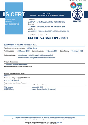 CERTIFICAZIONE AZIENDALE PER LA GESTIONE DEI PRODOTTI SALDATI PER IL SETTORE FERROVIARIO